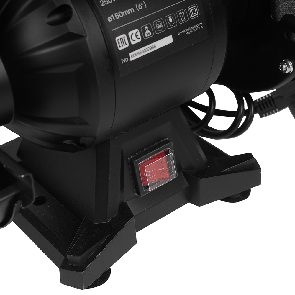 Точильный станок TEH TBG15025 предназначен для сухого шлифования металлических заготовок и затачивания режущего инструмента при помощи вертикально вращающихся заточных дисков.