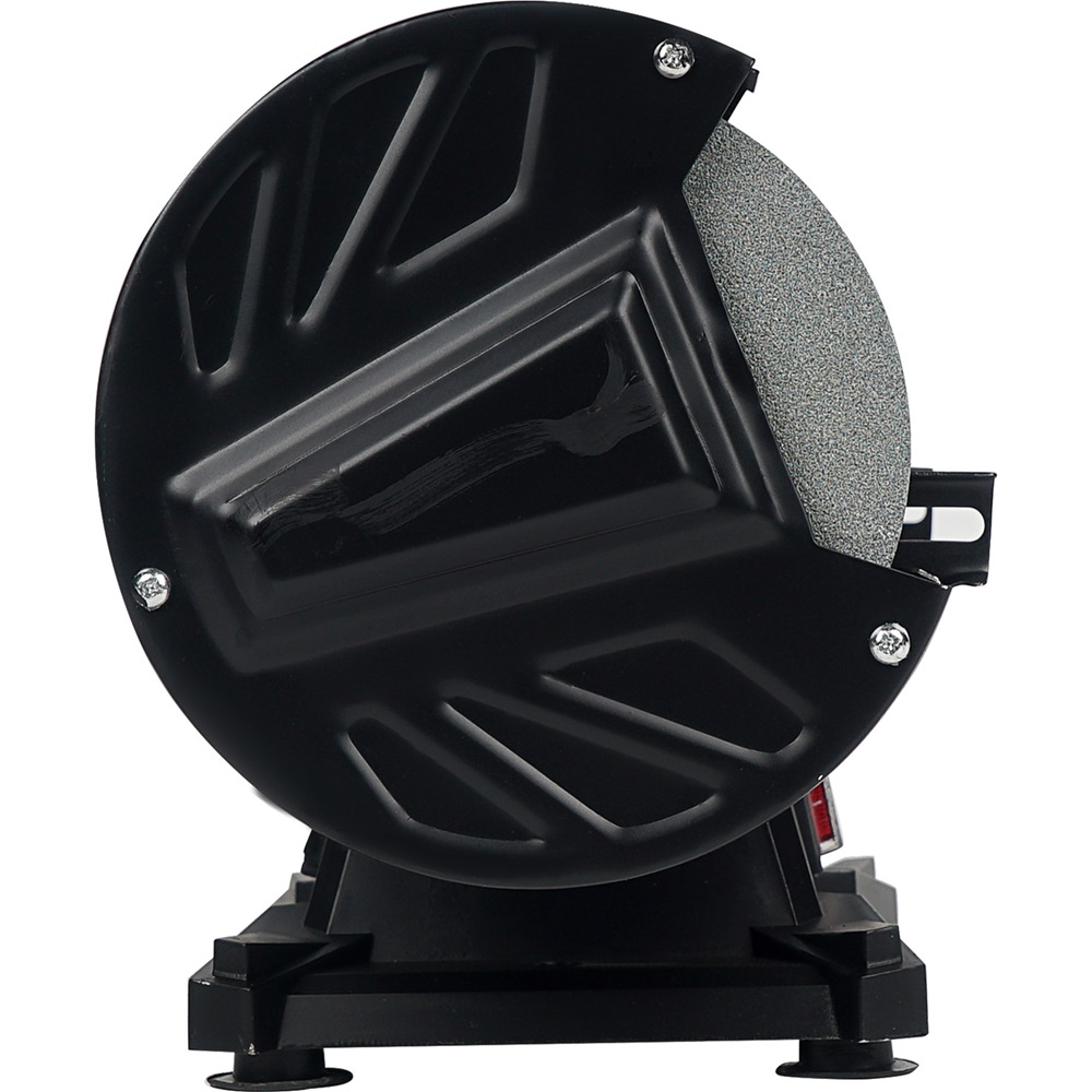 -Точильный станок отличается компактностью, хорошей эргономикой и может надёжно крепиться к рабочему столу, поэтому работать на нём очень удобно.