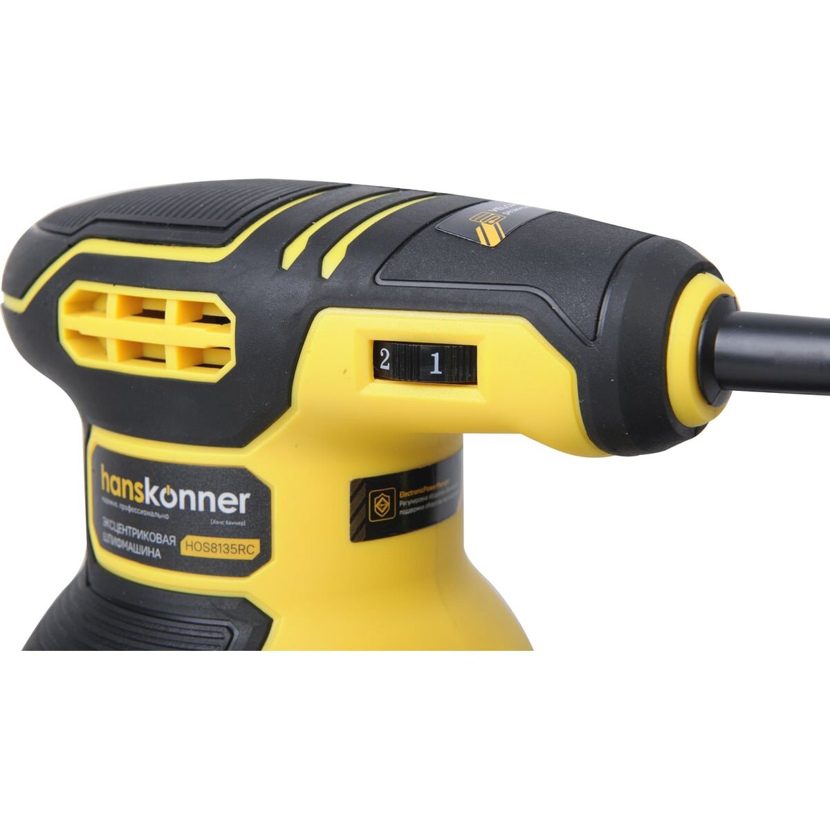 Эксцентриковая шлифовальная машинка Hanskonner HOS8135RC — компактный и удобный электроинструмент для шлифования поверхностей из различных материалов, очистки от ржавчины, лака, краски или остатков грунтовки. Эксцентриковый ход предотвращает повреждение поверхности, так как на каждом новом обороте меняется траектория абразивных частиц. Данная модель оснащена константной электроникой, которая повышает мощность при увеличении нагрузки, чем способствует продуктивной работе. Вместе с тем электронная регулировка частоты вращения обеспечивает точную настройку под обрабатываемый материал. Благодаря низкому профилю корпуса и системе снижения уровня вибраций машинка обладает хорошей практичностью и управляемостью, что дает возможность длительно вести качественное шлифование. Удобство в использовании дополняется эргономичною рукоятью с резиновыми вставками и системой крепления шлифовальной бумаги Velcro для быстрой и простой замены листов. В интересах долговечности используется функция плавного пуска. Морозостойкий резиновый сетевой кабель длинной 4 м, позволяет охватит рабочую зону площадью 50 м2.