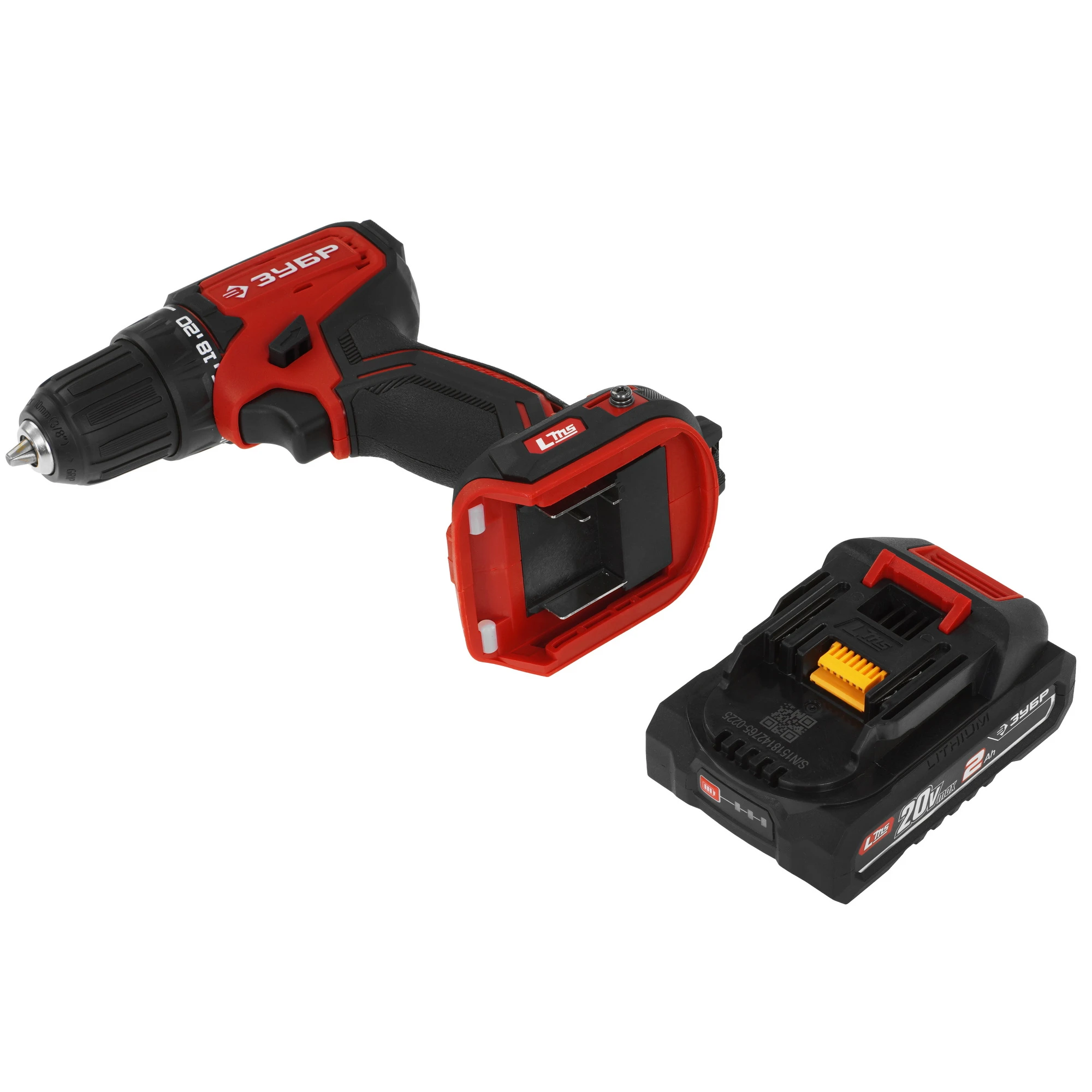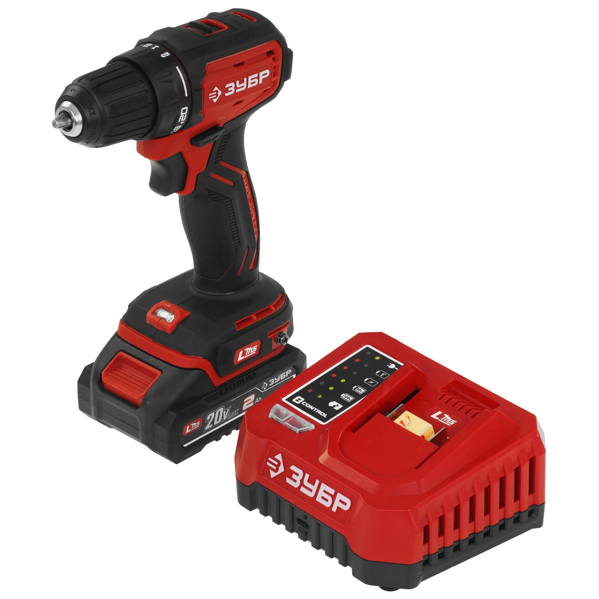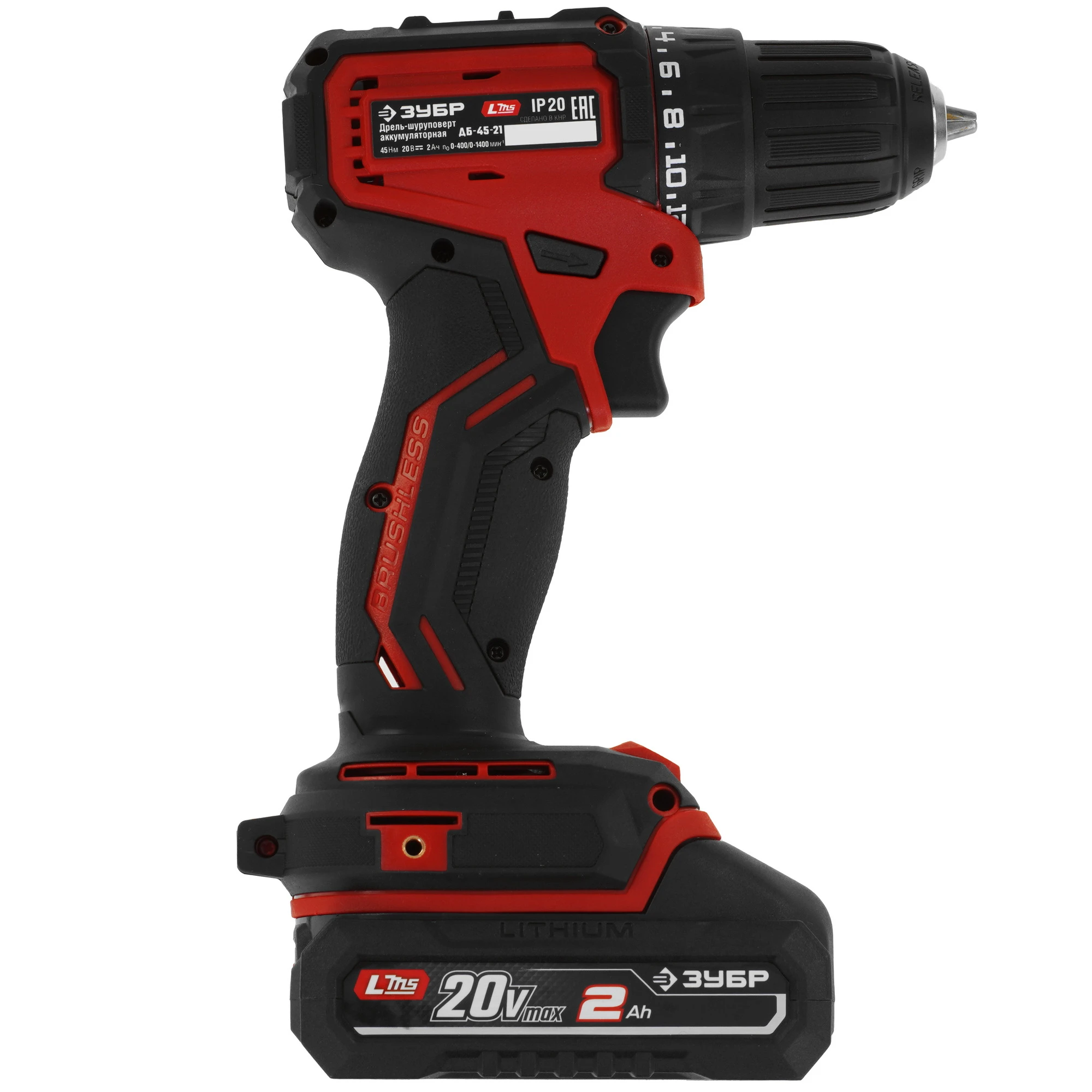 ЗУБР 20 В, 45 Н·м, 1 АКБ LMS (2 А·ч), бесщеточная дрель-шуруповерт ДБ-45-21 - инструмент из единой аккумуляторной системы LMS для 500+ инструментов.