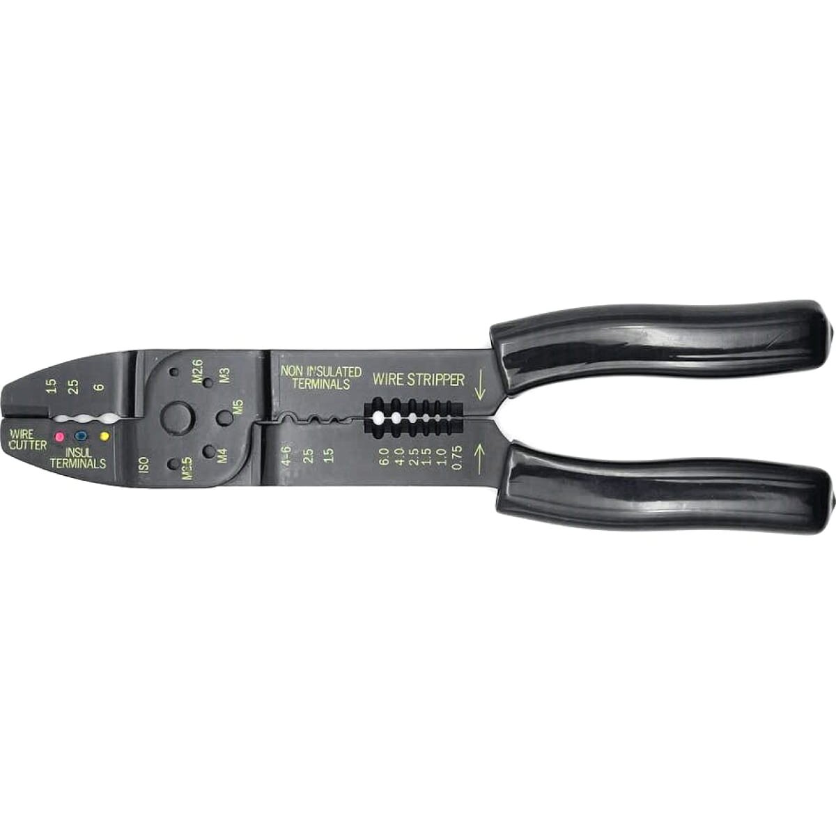 Пресс-клещи Felo для изолированных и неизолированных кабельных наконечников 0,75-6 мм2 59232040 применяются для качественной и быстрой резки кабелей, удаления изоляции с проводов, а также опрессовки кабельных кольцевых изолированных наконечников и штекеров. Подходят для зачистки проводов сечением от 0,75 до 6,0 мм, обжима клемм на проводах сечением от 1,5 до 6,0 мм. Также инструмент обладает режущими элементами для разрезания медных и латунных резьбовых шпилек М 2,6, М 3,0; М 3,5; М 4,0 и М 5,0. Клещи просты и удобны в применении, их прорезиненные рукоятки имеют эргономичную форму для удобства удержания, а корпус выполнен из прочной закаленной стали.