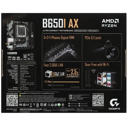 Материнская плата GIGABYTE B650I AX станет отличным выбором для создания компьютерной системы под различные задачи. Благодаря формату Mini-ITX данная модель отличается компактными размерами, что позволит создать миниатюрную систему для работы и развлечений. Кроме того, платформа обладает классическим дизайном, за счет чего легко дополнит визуальное оформление практически любой сборки.