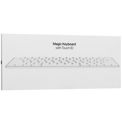 Apple Magic Keyboard с Touch ID содержит 79 клавиш с раскладкой ISO. Подключается клавиатура через Bluetooth быстро и без лишних действий. Она работает от аккумулятора, который будет работать около месяца без подзарядки. Для восполнения заряда можно воспользоваться кабелем USB‑C/Lightning. Ее особенность в поддержке Touch ID ‒ датчика для безопасной и быстрой авторизации на сайтах.