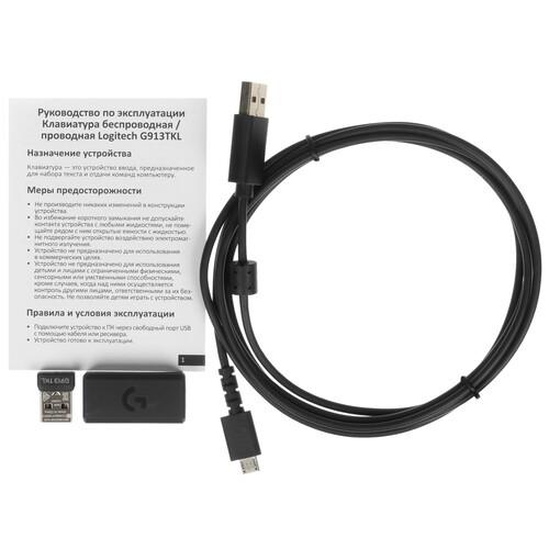 Клавиатура беспроводная Logitech G913 TKL [920-009505] черного цвета характеризуется высокой прочностью и долговечностью. Компактный размер облегчает размещение на рабочем столе и подходит для использования в дороге. Металлический корпус устойчив к повышенной нагрузке и надолго сохраняет первоначальный вид. На задней части есть специальный разъем для хранения USB-проводника.