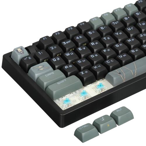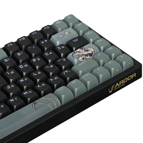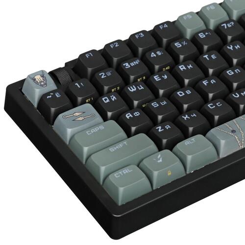 Механическая клавиатура проводная + беспроводная ARDOR GAMING Kusarigama – игровая модель с линейными переключателями Gateron Mint. В устройстве реализована RGB подсветка с 15 режимами. Подсвечиваются области кейкапов, а также русская и английская раскладки. Длина пути переключателей составляет 4 мм, а расстояние срабатывания – 2 мм. Шумоизолированное исполнение корпуса снижает уровень шума при нажатии клавиш. Имеется колесо прокрутки. Конструкция Hot Swap позволяет менять переключатели без пайки и специальных инструментов. Функциональность клавиатуры расширена благодаря наличию клавиши Fn. Устройство соответствует формату 75%: цифровой блок отсутствует. Поддерживается возможность одновременного нажатия неограниченного количества клавиш.
