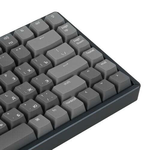 Клавиатура Keychron K2 v2 [K2-C2H] отличается компактной раскладкой без цифрового блока с 84 клавишами. Кликающие механические переключатели Gateron Blue отличаются легким нажатием и быстро срабатывают на каждое нажатие. Для повышения комфорта в условиях недостаточной освещенности реализована RGB-подсветка.