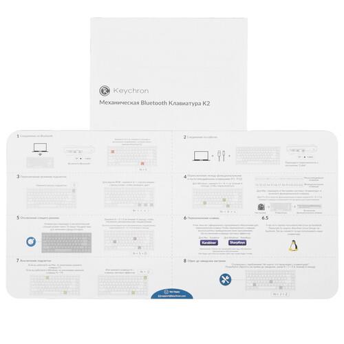 Система Hot Swap предусматривает простую замену переключателей с помощью специального инструмента. Keychron K2 v2 предлагает два варианта подключения: проводной посредством кабеля с интерфейсом USB и беспроводной по технологии Bluetooth. Аккумулятор гарантирует работу клавиатуры в автономном режиме.