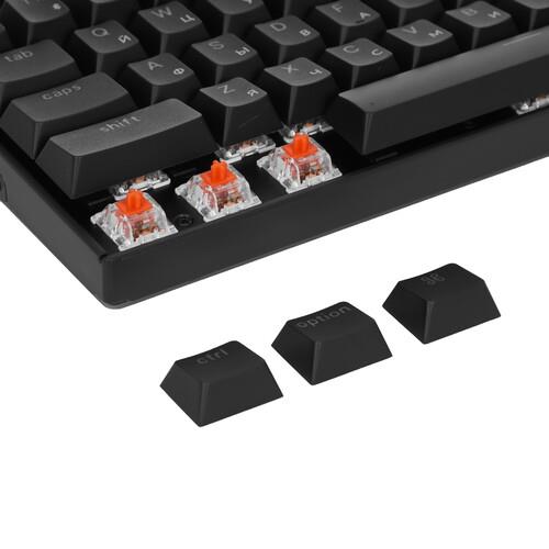 Беспроводная механическая клавиатура в раскладке TKL (80%). Double-shot PBT кейкапы с пропуском подсветки, полностью программируемая, поддерживает Bluetooth и подключение по проводу. В комплекте командные клавиши для Windows и macOS.