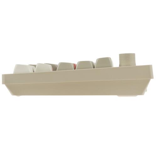 Клавиатура проводная + беспроводная Keychron V1 Max [V1M-R3-RU] оснащена 81 клавишей с переключателями Gateron Jupiter Brown. Эти свитчи обеспечивают плавный ход, а также точно и быстро реагируют на каждую клик. Кейкапы сделаны из PBT-пластика методом двойного литья. Такие колпачки устойчивы к износу и механическим воздействиям, их поверхность легко очищается от отпечатков пальцев и следов жира. Корпус имеет вибропоглощающую прокладку, которая заметно снижает шум от клавиш.