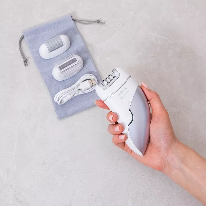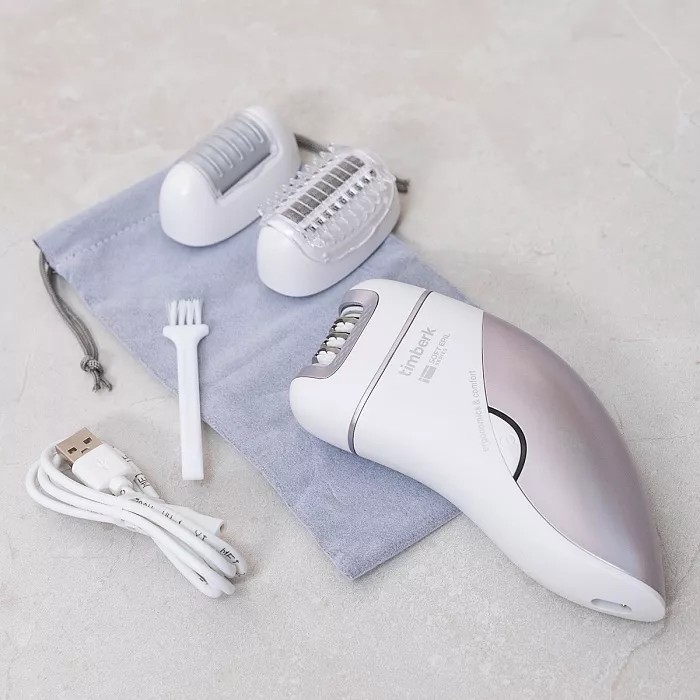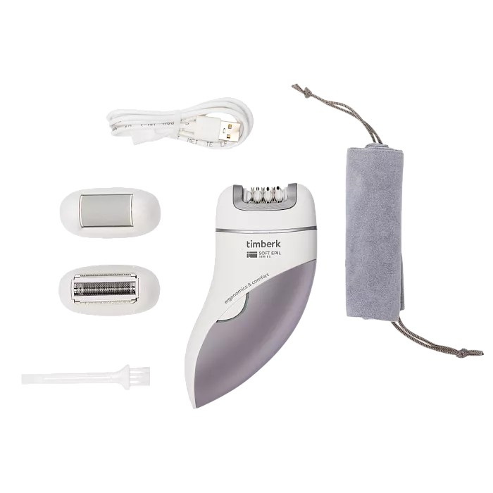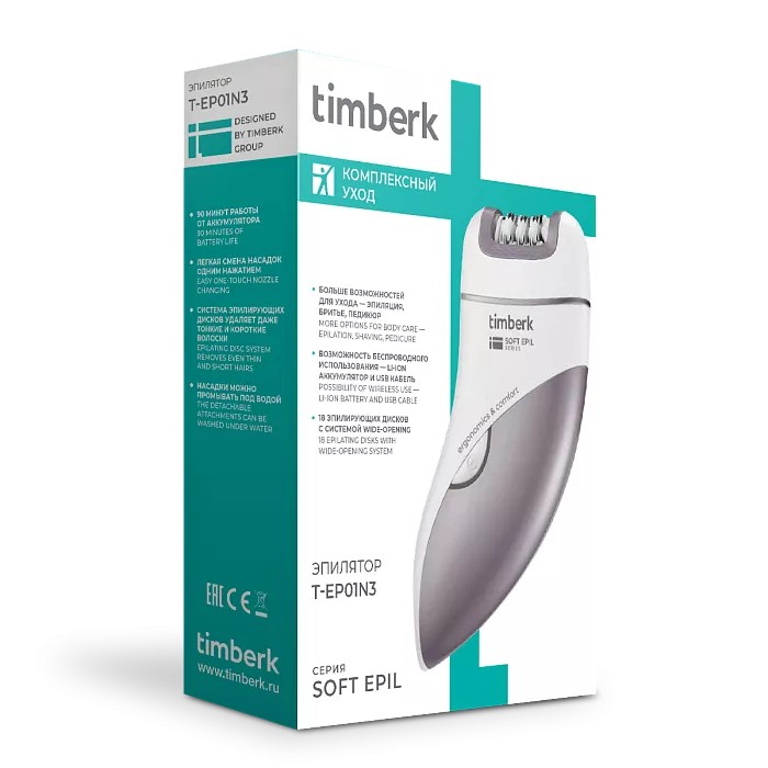 Эпилятор TIMBERK T-EP01N3 белый. Эпилятор Timberk T-EP01N3 предназначен для сухой эпиляции и имеет 18 эпилирующих дисков с системой wide-opening, захватывающих даже тонких и коротких волосков от 0,5 мм. В комплекте имеются две дополнительные насадки для бритья и роликовая пилка, которые дают больше возможностей для ухода за телом. Благодаря встроенному Li-ion аккумулятору эпилятор может непрерывно работать до 90 минут и полностью заряжаться за 120 минут. Функция plug and play позволяет использовать прибор как от аккумулятора, так и от сети (с помощью USB шнура). Входящие в комплект чехол и щеточка для чистки делают уход и хранение эпилятора проще и удобнее.