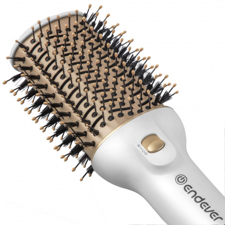 Керамическое покрытие, 3 скоростных и температурных режима, Режим подачи холодного воздуха (43°С), Температура подаваемого воздуха: Режим №1 - 56°С и Режим №2 - 85°С, Комбинированные щетинки без спутывания волос, Удобная петелька для подвешивания, Безопасный наконечник, Шарнирное вращение шнура на 360°