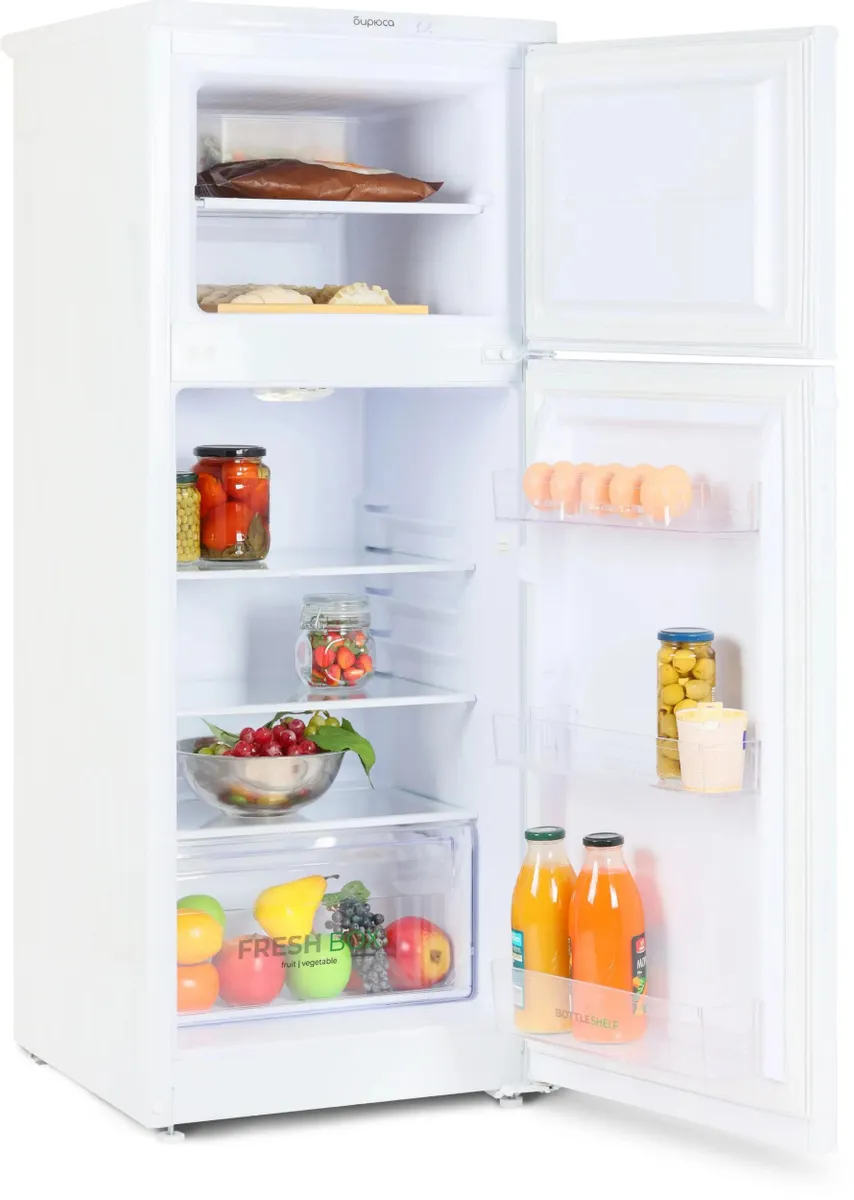 Прозрачные полки из прочного пластика обеспечивают хорошую видимость продуктов и легко моются. Светодиодное освещение создает равномерную подсветку внутреннего пространства. Регулируемые ножки позволяют установить холодильник устойчиво на любой поверхности.