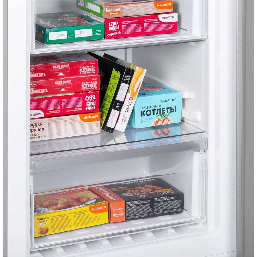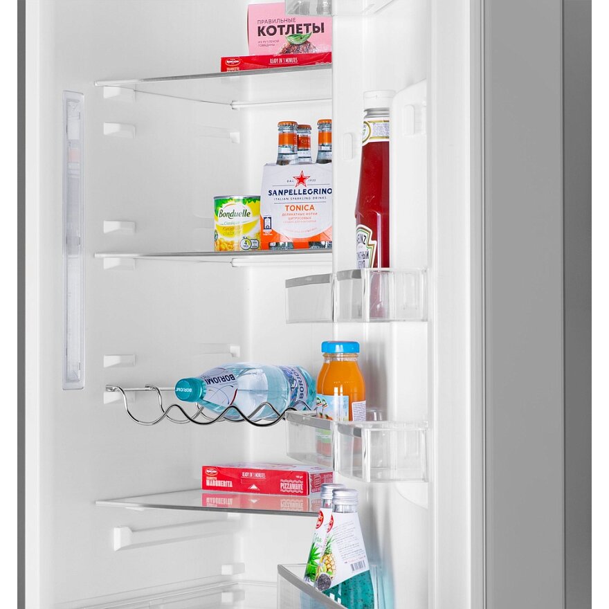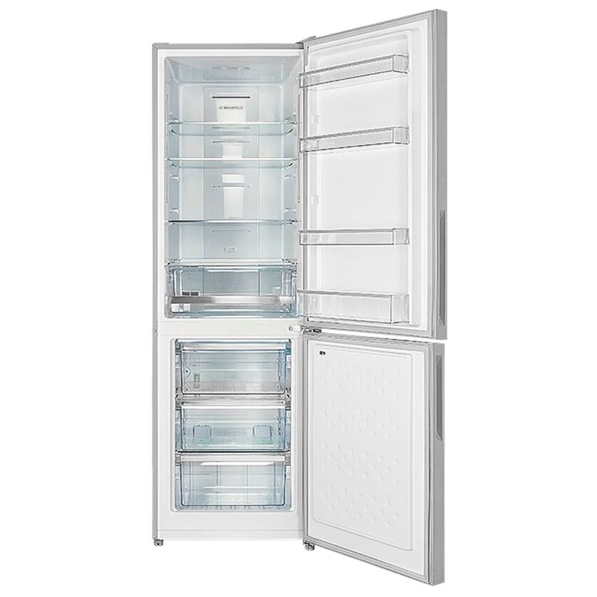 Холодильник Maunfeld MFF185NFS это двухкамерный прибор, выполненный в белом цвете. Классический дизайн подойдет к абсолютно любому кухонному интерьеру и дополнит его. Модель имеет стандартные габариты, поэтому будет удобна для встраивания. Высота устройства — 185,5 см, ширина — 59,5 см, глубина — 64,5 см. В его основу положен надежный и экономичный инверторный компрессор, соответствующий классу А+. Классификация по уровню энергопотребления дает объективное представление о том, насколько эффективно прибор расходует данный ресурс. Холодильник Maunfeld MFF185NFS оборудован дисплеем с цифровой индикацией температуры и настроек. Управление техникой осуществляется с помощью сенсорных переключателей. Помимо этого, светодиодная подсветка ярко освещает внутреннее пространство камеры и отличается долговечностью.