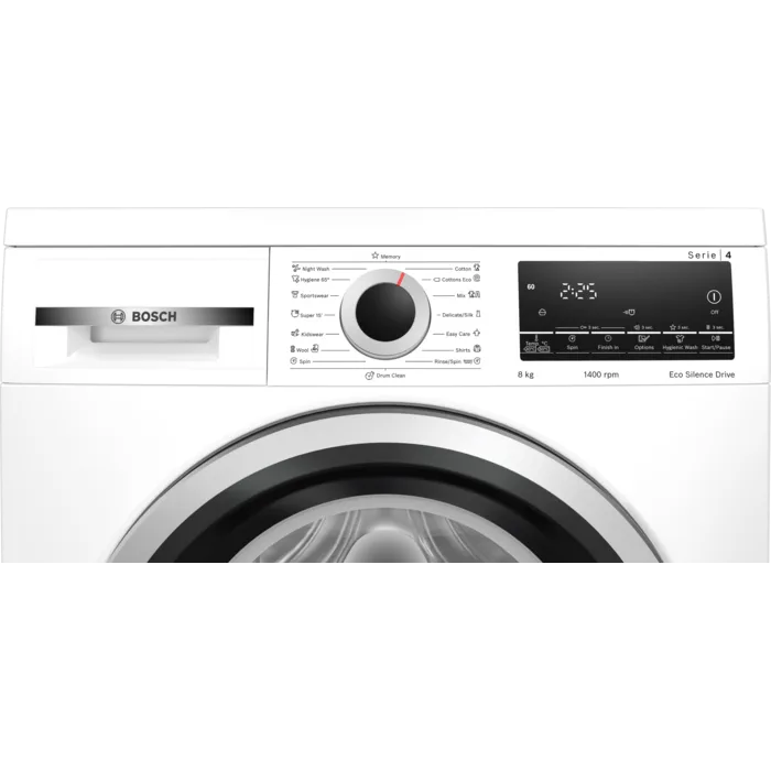 Белая стиральная машина BOSCH WLS28460ME защищена от протечек специальным механизмом. Поэтому вы сможете оставить работающую машину и уйти по делам. Все настройки программ производятся через поворотный механизм, при этом на дисплее отображаются параметры стирки. Модель WLS28460ME оснащена функцией автобаланса, который распределит автоматически белье в барабане, если оно было загружено неравномерно.