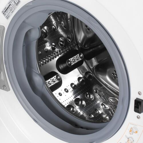 Стиральная машина LG F2T9GW9W оптимально подходит для больших семей и мини-отелей. За цикл она способна очищать до 8.5 кг белья, расходуя мало воды (до 55 л) и электроэнергии. Модель имеет 14 режимов работы и технологию обработки вещей паром. Одна из программ позволяет очистить белье за 14 минут. Это значит, что вы без труда сможете освежить нужную блузку или платье, чтобы быстро собраться по делам. Скорость отжима также можно регулировать в пределах до 1200 об/мин. Предусмотрена возможность дозагрузки белья в процессе стирки.