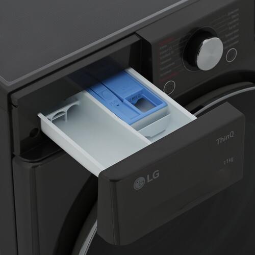 Стиральная машина с фронтальной загрузкой LG TW4V9EW9P черного цвета вмещает в себя до 11 кг белья и подходит для семьи из 4 человек. 14 программ стирки позволяют подобрать необходимый вариант для любого типа ткани. Инверторный двигатель экономит электроэнергию и работает бесшумно. Процесс стирки можно контролировать через приложение LG ThinQ на смартфоне.