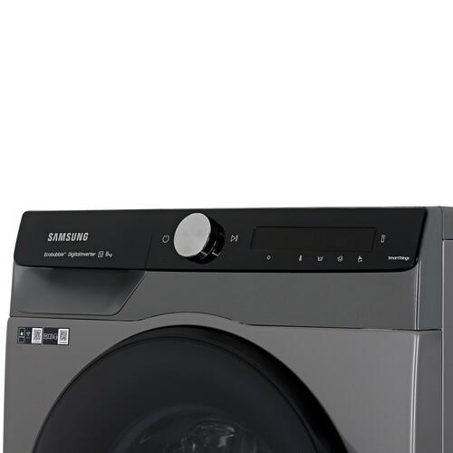 Стиральная машина Samsung WW80AG6L28BXLP в узком сером корпусе с фронтальной загрузкой вмещает 8 кг белья. Дисплей с сенсорными кнопками и поворотным рычагом позволяют выбирать нужные программы и функции. Модель поддерживает управление через мобильное приложение и голосового помощника Алиса. Вы можете получать голосовые или уведомления на смартфон об окончании стирки, необходимости очистки, ошибках и т. д.