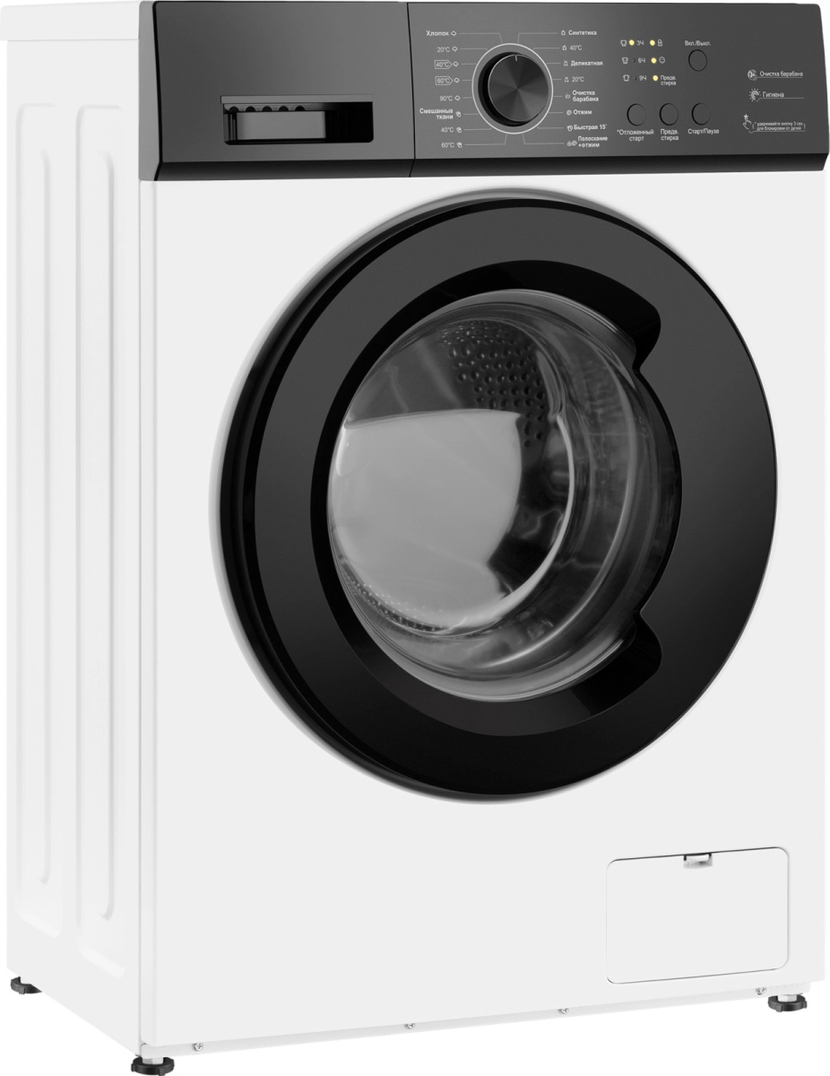 - Программы: Хлопок, Синтетика, Смешанная, Быстрая 30', Деликатная, Шерсть, Рубашки, Спортивная, Темные, Интенсивная, Полоскание, Отжим, Слив, Ежедневная, Джинсы, Предварительная стирка