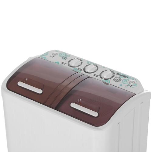Эта полуавтоматическая стиральная машина оснащена двумя отсеками: для стирки и для отжима. Активаторный тип стирки обеспечивает качественное и бережное очищение вещей.