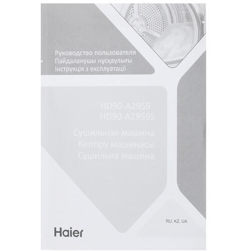 Сушильная машина Haier HD90-A2959 имеет 12 программ для ухода за вещами разных типов, есть отдельная полка для сушки обуви, шапок и других вещей. По истечении программы устройство издает звуковой сигнал. Настройки можно осуществлять с помощью кнопок и поворотного переключателя, что позволяет равномерно высушить вещи без потери формы и деформации ткани.