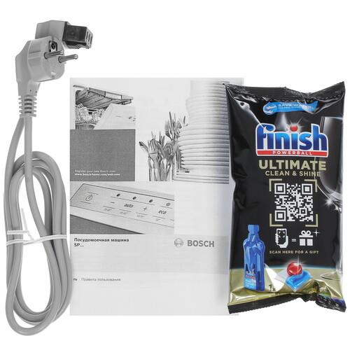 Bosch SPV4XMX28E с модулем Wi-Fi допускает управление со смартфона через приложение Home Connect. Вы можете блокировать панель на корпусе для защиты от любопытных детей. Яркий луч на полу выполняет функцию рабочего индикатора. По окончании цикла срабатывает звуковой сигнал. Вы можете отключать индикаторы, настраивать таймер отсрочки до 24 ч и активировать бесшумный ночной режим.