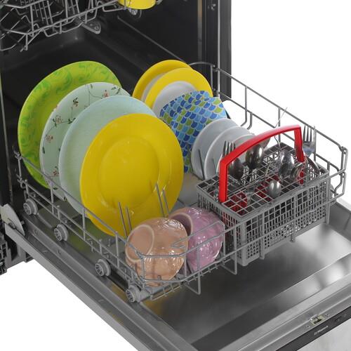 Режим отложенного старта запускает работу встраиваемой посудомоечной машины Hansa ZIM615PQ в строго выбранный временной отрезок – таким образом, вы получите чистые и свежие столовые принадлежности, например, к приходу гостей или семейному застолью. Доступ к функционалу домашней ассистентки производится при помощи кнопочной панели управления. Основные корзины прибора с легкостью меняют высоту, тем самым позволяя очищать посуду большого диаметра.