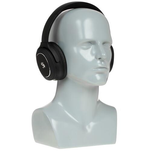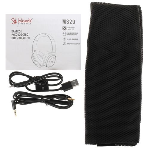 Bluetooth-гарнитура A4Tech Bloody M320 в черном цветовом оформлении отлично подойдет для геймера благодаря эффектному дизайну и высокой скорости передачи звука по беспроводному каналу. Модель подключается к ПК, ноутбуку или смартфону по беспроводному интерфейсу Bluetooth 5.0 и поддерживает связь с устройством на расстоянии до 10 м. В стереогарнитуре предусмотрены 40-миллиметровые динамики с поддержкой передачи звуков в диапазоне частот 20-20000 Гц. Амбушюры из черной экокожи гарантируют комфорт и хорошую звукоизоляцию.