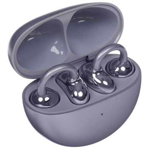 Наушники TWS HUAWEI FreeClip примечательны конструкцией открытого типа и оформлением в фиолетовом цвете. Они состоят из крепления Comfort Bean, звуковой системы Acoustic Ball и соединительной планки C-bridge с адаптивным датчиком силы зажима. Форма разработана с учетом анатомии ушной раковины. Это обеспечивает комфортное ношение и отсутствие сдавливания.