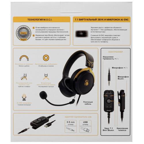 Проводная гарнитура A4Tech Bloody M590i с 7.1-канальной системой обеспечивает объемный виртуальный звук, что позволяет погрузиться в мир игр. Мембрана динамиков диаметром 50-мм изготовлена из наномицелия и углеродного волокна, благодаря чему достигаются точная передача деталей и глубокие басы. Съемный AI-ENC микрофон фильтрует и подавляет фоновый шум, поэтому голос передается собеседнику чисто.