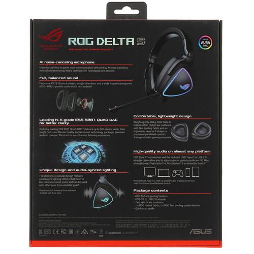 Проводная гарнитура Asus ROG Delta S разработана с учетом требований геймеров, предлагая реалистичное 7.1-канальное звучание, высокий уровень эргономичности и длительное время автономной работы. Она оборудована чипом Hi-Fi-класса ESS 9281 с технологией QUAD DAC, мощными 50-мм излучателями и микрофоном с поддержкой технологии шумоподавления. Амбушюры D-образной формы помогают максимально сконцентрироваться на игровых действиях и не упустить важные моменты. Чаши украшены полноцветной светодиодной подсветкой с фирменным логотипом. На чашах имеются элементы управления основными параметрами. Поставляемый в комплекте переходник с USB-C на USB 2.0 гарантирует широкую совместимость. Среди других особенностей Asus ROG Delta S отмечается совместимость с Nintendo Switch.