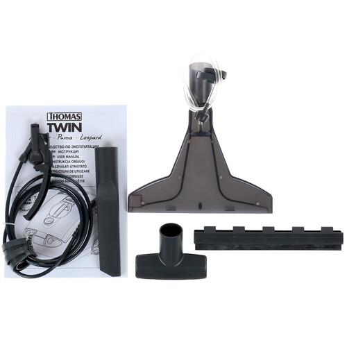 Моющий пылесос THOMAS TWIN Puma в черном корпусе рассчитан на выполнение сухой и влажной уборки. И с той, и с другой он справляется одинаково хорошо. При мощности 1600 Вт прибор имеет контейнер-пылесборник на 6 л. Емкость бака для воды и моющего средства составляет 2.4 л. Радиус действия модели составляет 9 м благодаря длинному кабелю и телескопической трубке. Это позволяет владельцу пылесоса THOMAS TWIN Puma убираться на большом удалении от розетки.