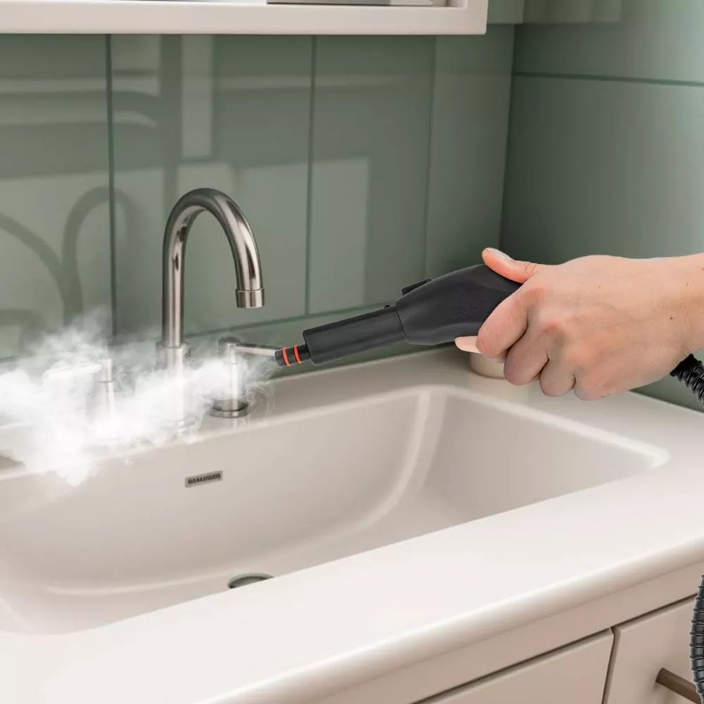Если установить насадку с резиновым скребком, то можно очистить любые гладкие поверхности вроде окон или зеркал. С надетой на насадку тряпкой можно отпаривать ткани и обивки мягкой мебели.