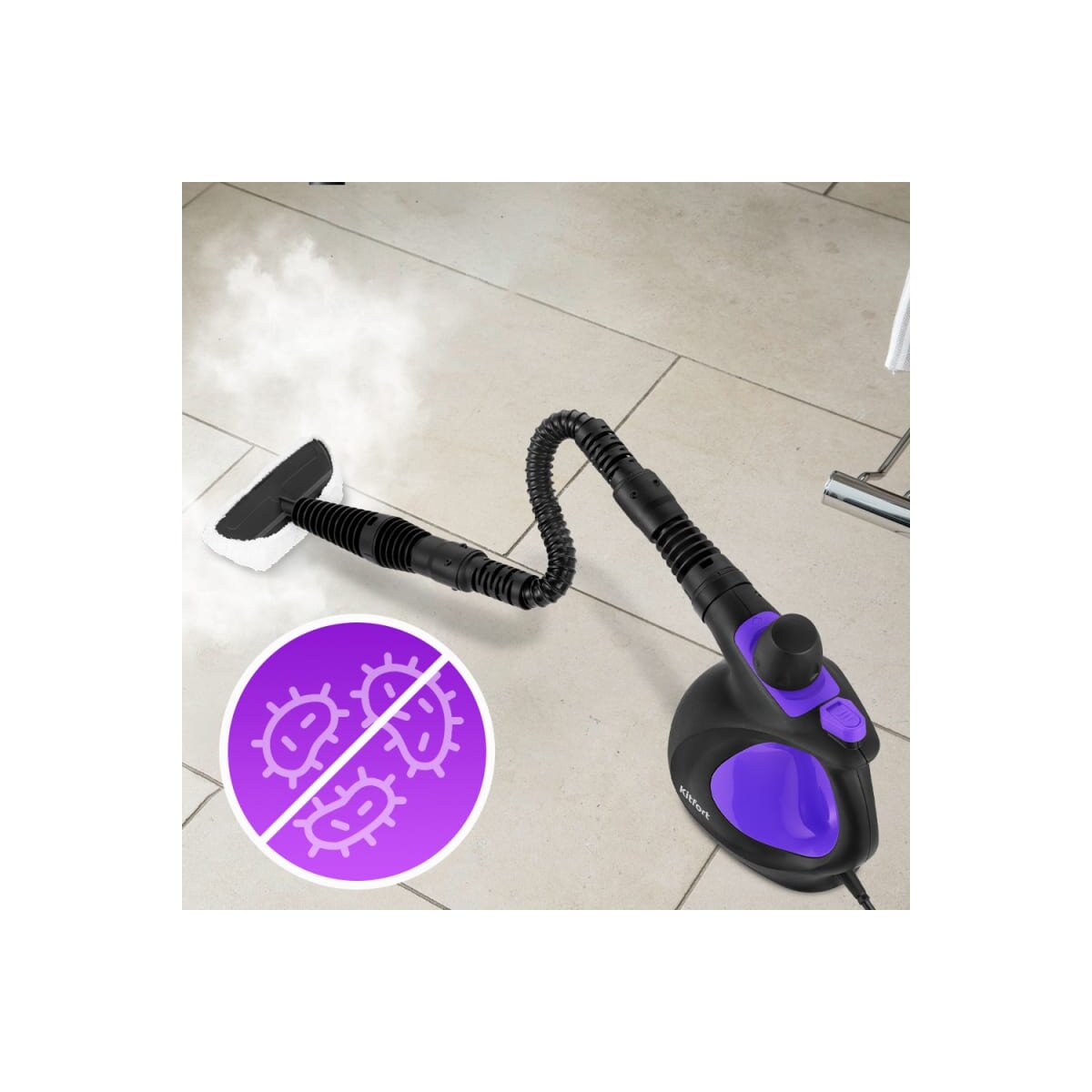Пароочиститель КТ-9195 предназначен для уборки интерьеров, полов и поверхностей, выдерживающих влагу и высокую температуру, а также для отпаривания тканей.