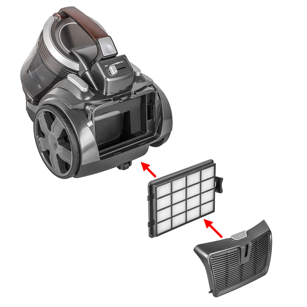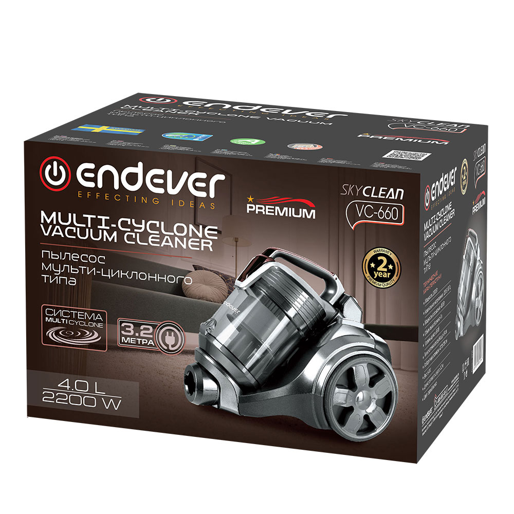 Тип уборки – сухая, Вместительный резервуар для мусора, Гибкий шланг с регулятором воздушного потока на ручке, Инновационное строение корпуса и фильт ров, минимизирующее уровень шума, Кнопка для автоматической смотки шнура, Моющийся циклонный фильтр, Крепление для парковки трубы, Колеса с резиновым покрытием