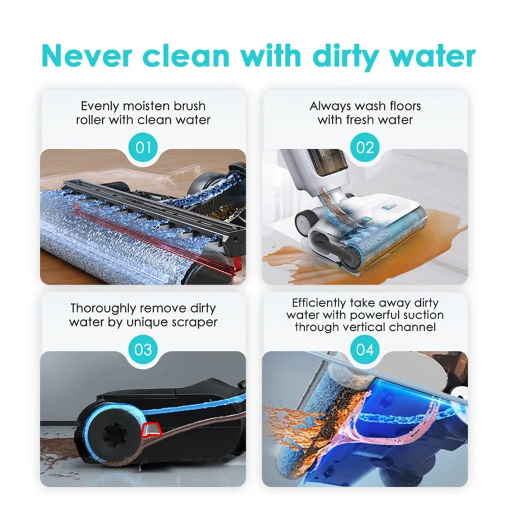 Yoniev пылесос Wet & Dry U5 – беспроводная модель. Она предназначена для единовременного выполнения двух типов уборки — сухой и влажной. Щетка примыкает к стене с одной стороны, позволяя проводить очистку вдоль плинтусов. Устройство удаляет пятна любой стойкости. Щетку можно наклонять на 30°. Это удобно для очищение полов и удаления пыли под мебелью. можно собрать пыль, скопившуюся под мебелью. Благодаря разделению потоков и двум герметичным емкостям для жидкости для влажной уборки используется только чистая вода. Детали устройства можно промывать под водой.