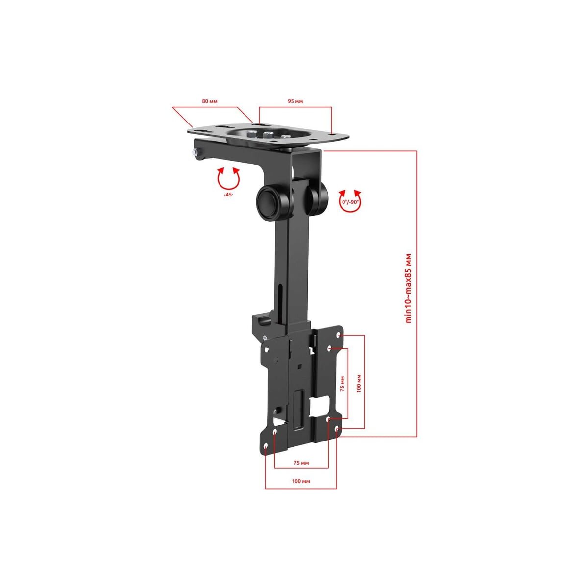 Тип кронштейна: Складывающийся, потолочный, подполочный кронштейн для ТВ или монитора с возможностью навески под мансарду
