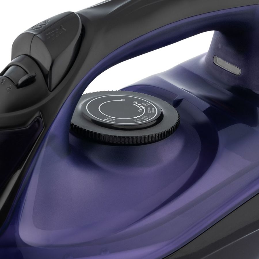 мощность: 2400Вт; паровой удар: 140г; емкость для воды: 280мл; подошва: KeramoPro; самоочистка от накипи; автоотключение; цвет: черный и фиолетовый
