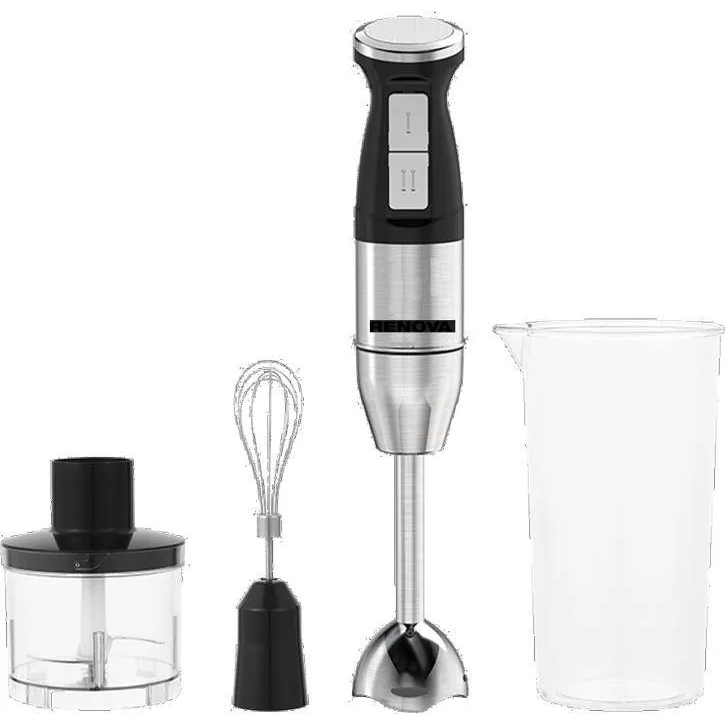 Максимальная мощность: 500Bт; 3 в 1: насадка блендер, насадка-венчик, насадка-измельчитель; Корпус блендера из Высококачественный АБС-пластик; Количество скоростей: 2 режим скорост; Шнур электропитания: 1 м; Защита двигателя от перегрузки: термостат (автоотключение до полного остывания двигателя); Чаша для резки (500мл); Мерный стакан (700мл); Номинальное напряжение: 220 – 240в; Вес нетто/ брутто (кг) : 1,06 / 1,18 кг; Габариты упаковки (ШхГхВ): 209х149х215 мм