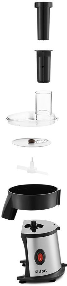 Комплектация: В комплекте с прибором идут 2 ножа «2 в 1» (тёрка и шинковка) и нож для нарезки соломкой. Прибор отлично справится с овощами, фруктами, сыром и другими продуктами.