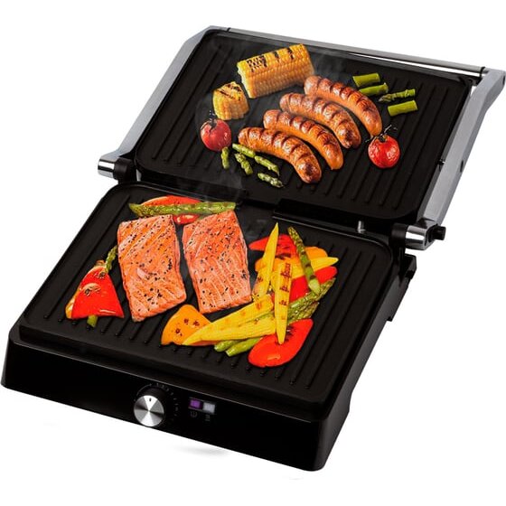 В одностороннем режиме крышка гриля откидывается на 180°, благодаря чему гриль превращается в большую жаровню, а продукты можно выложить сразу на две панели.