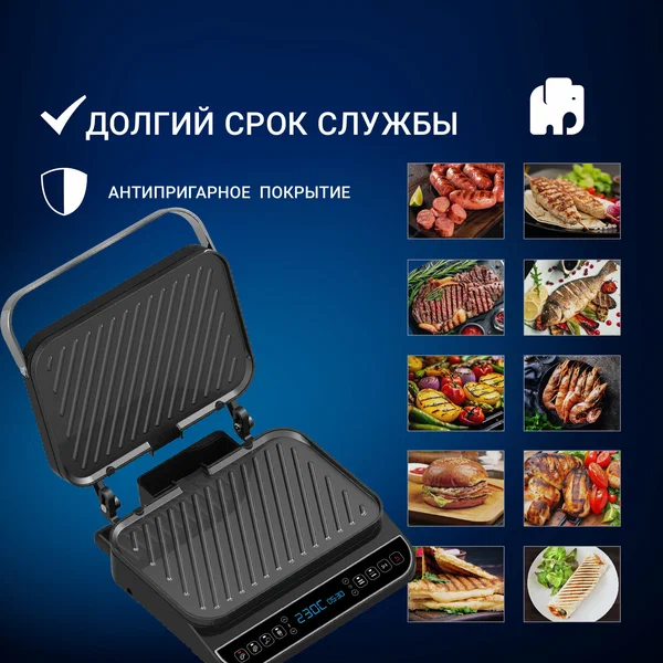 Общие характеристикиЦветчерный / серебристыйТипгрильУправлениеэлектронноеМощность2000 ВтМатериал корпусакомбинированныйМатериал рабочей поверхностиметаллКоличество сковородок в раклетнице1Размеры и вес31x35.4x16.7 см, 4 кгОсобенностиОсобенностиантипригарное покрытие, поддон для сбора жира, съемные пластиныЧисло режимов4Дополнительные функцииавтоматическое отключение, защита от перегрева, регулировка температурыДополнительная информацияРежим барбекю, Таймер, Сенсорные кнопки, Звуковой сигнал, Защита от перегреваГабариты и вес с учетом упаковкиГабариты транспортной упаковки41.20х36.60х19.50 смВес в транспортной упаковке4.63 кг