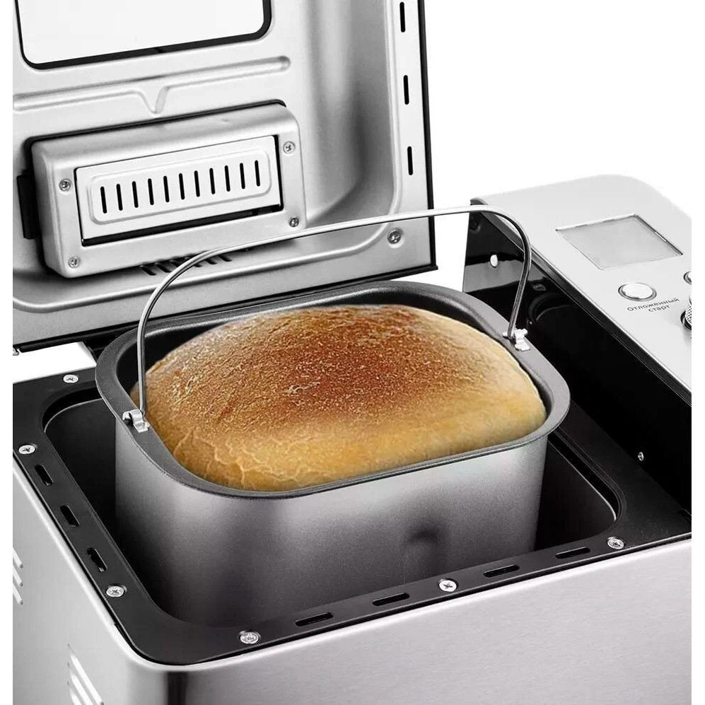 выбор цвета корочки, диспенсер, поддержание температуры, регулировка веса выпечки, таймер, автоматический дозатор для добавок, антипригарная форма для выпечки, добавление доп. ингредиентов на любой стадии выпечки, звуковой сигнал о завершении работы, монохромный LCD дисплей, энергозависимая память