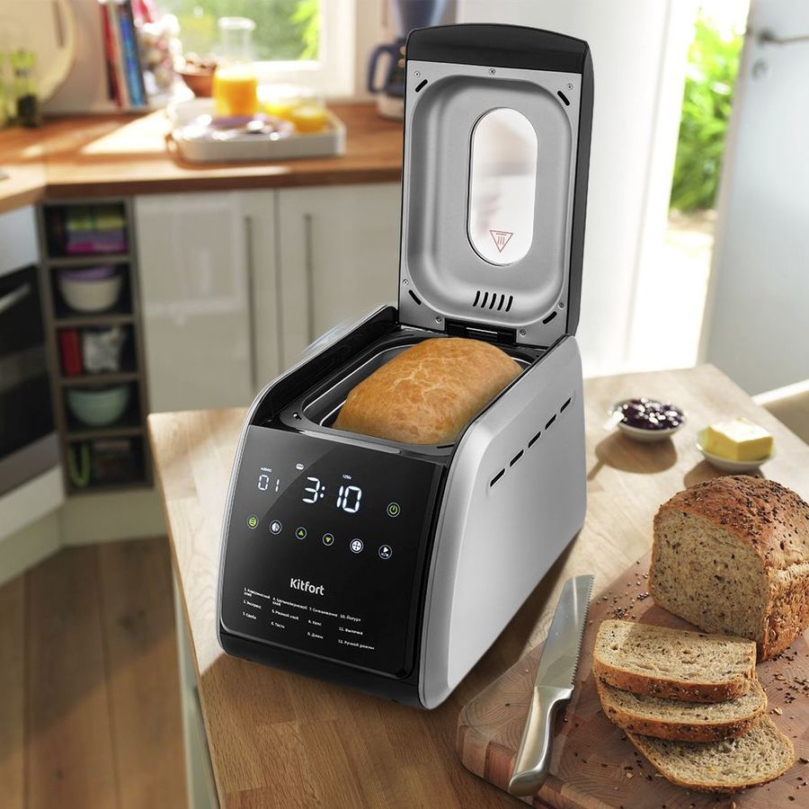 Программы выпечки: классический хлеб, экспресс, сдоба, цельнозерновой хлеб, ржаной хлеб, тесто, смешивание, кекс, джем, йогурт, выпечка, ручной режим
