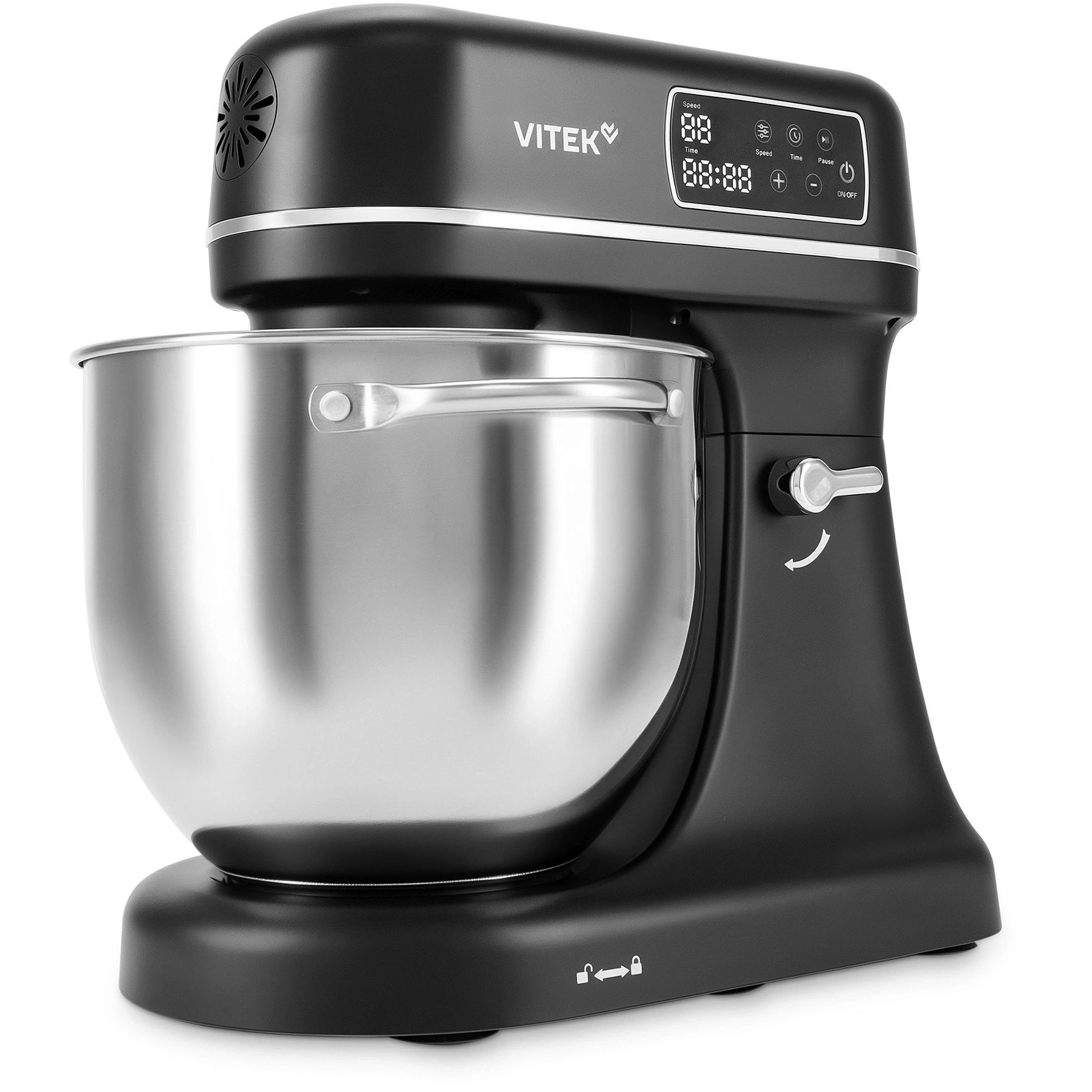 Миксер, чаша, защитный обод, насадка-венчик, насадка-крюк, насадка-лопатка, кулинарная силиконовая лопатка, книга рецептов, инструкция
