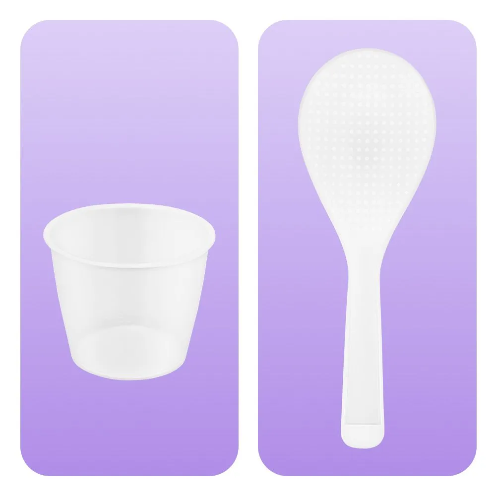 В комплекте – мерный стакан, ёмкостью 160 мл, и мерная ложка. Ложка не царапает поверхность устройства. С помощью этих аксессуаров можно точно отмерять крупы, воду и другие ингредиенты по рецепту.