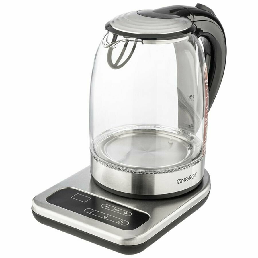 Чайник ENERGY e-220e 1.7 л стекло, на подставке 164150 предназначен для использования в офисе или дома.