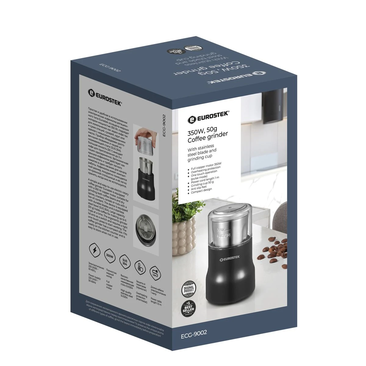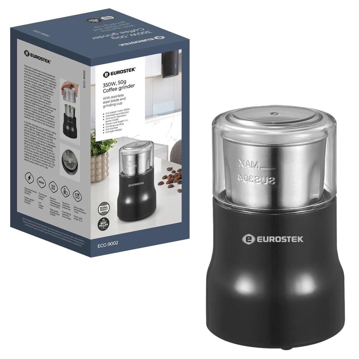Кофемолка ECG-9002 проста и удобна в использовании. Подойдет для измельчения как зерен кофе так и сухих специй, сухарей, круп. мощность 350 Вт, объем 50 гр.