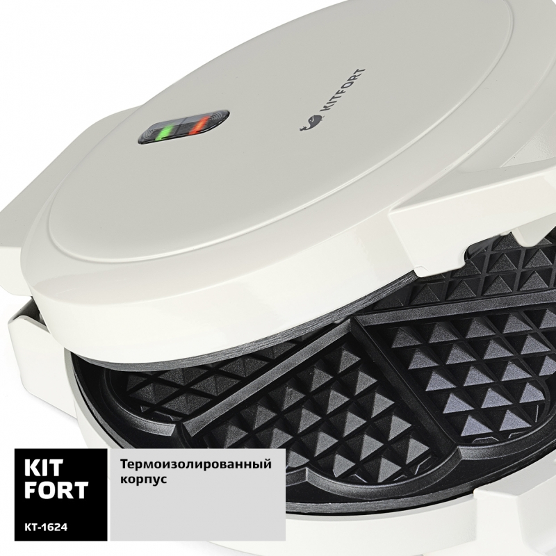 - БрэндKITFORTМодельКТ-1624Мощность1000 ВтТип управлениямеханическоеАнтипригарное покрытиедаФорма нагревательных частейвафлиФормы для готовкипластины для вафельКоличество отделений в пластине для вафель5
