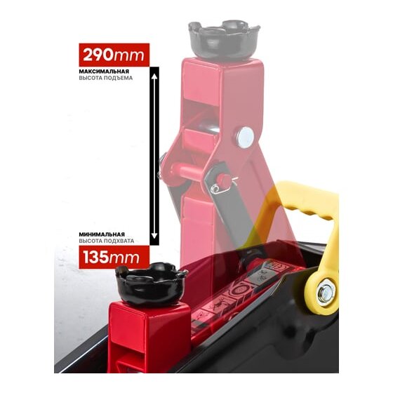 Высота подхвата: 135 мм — позволяет использовать домкрат для автомобилей с низким клиренсом.